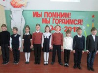 участники мероприятия "Мы помним! Мы гордимся!"(учащиеся 2 кл прочли стихи)