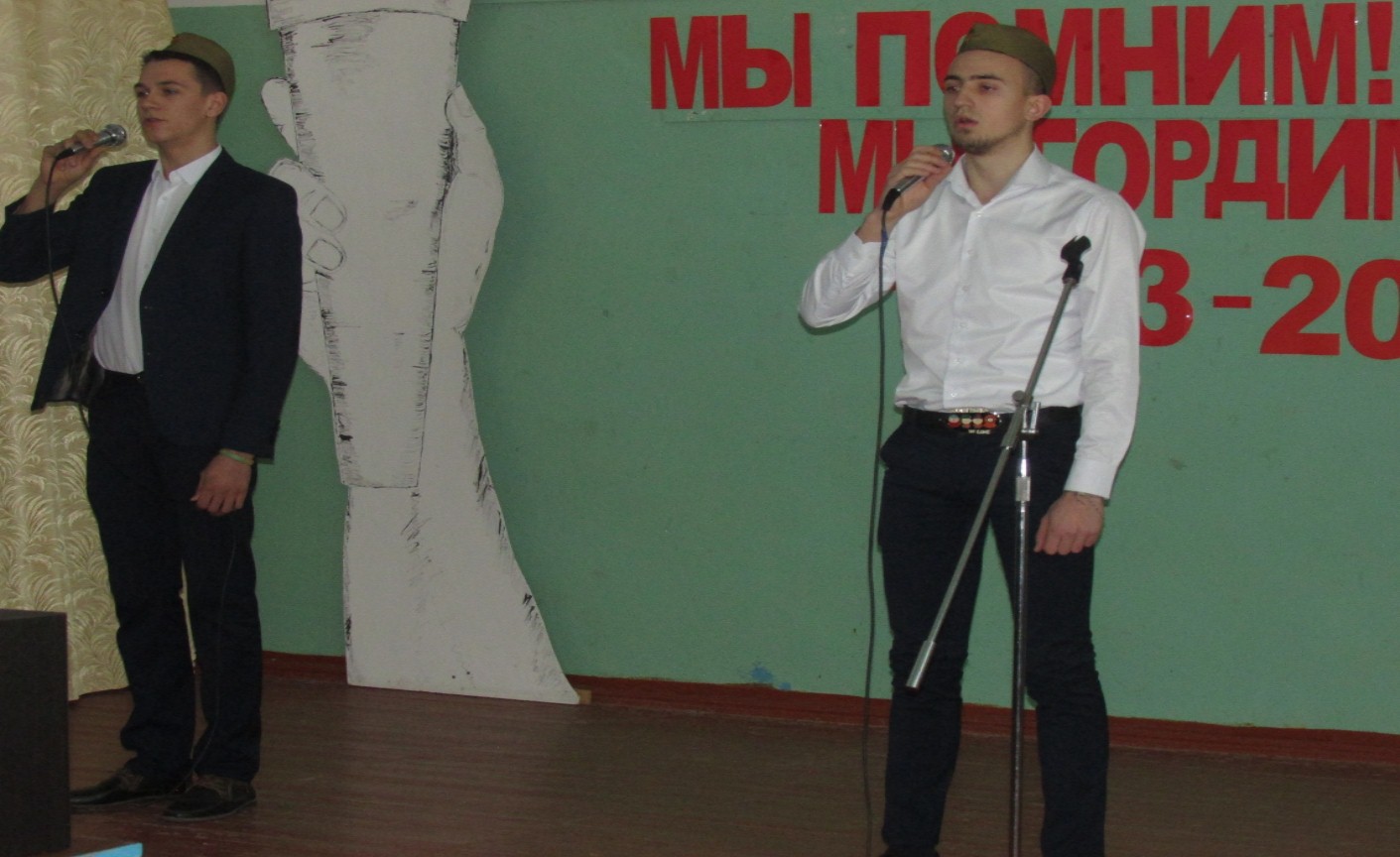 в исполнении учащихся 11кл Куркина П и Химича А прозвучала песня "От героев былых времён"