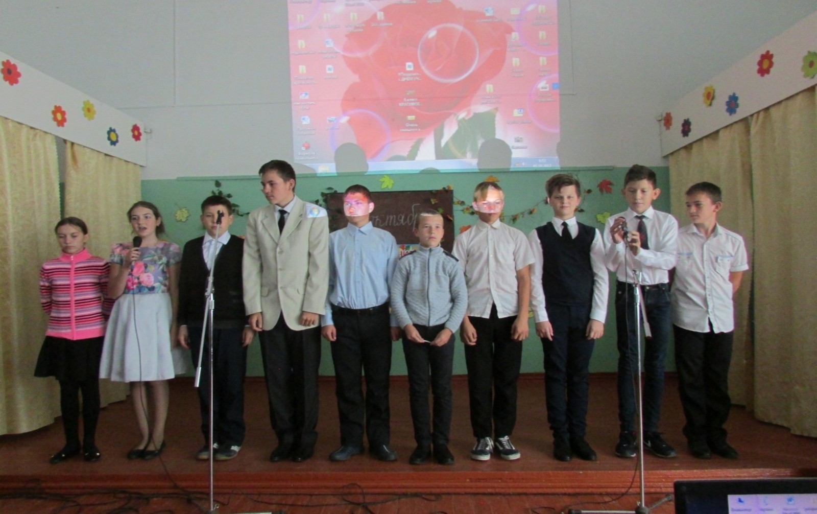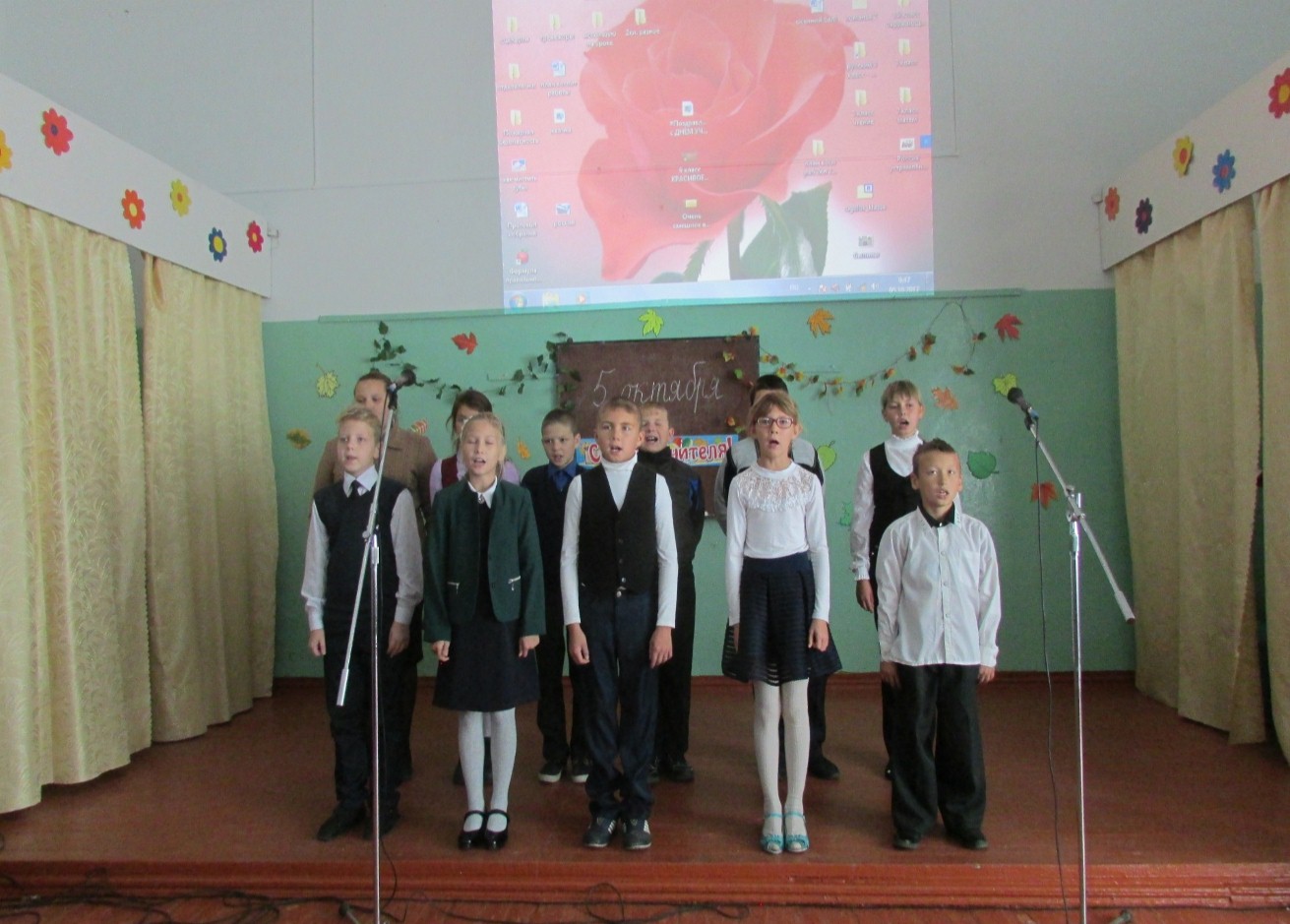 учителей поздравляют с праздником пятиклассники