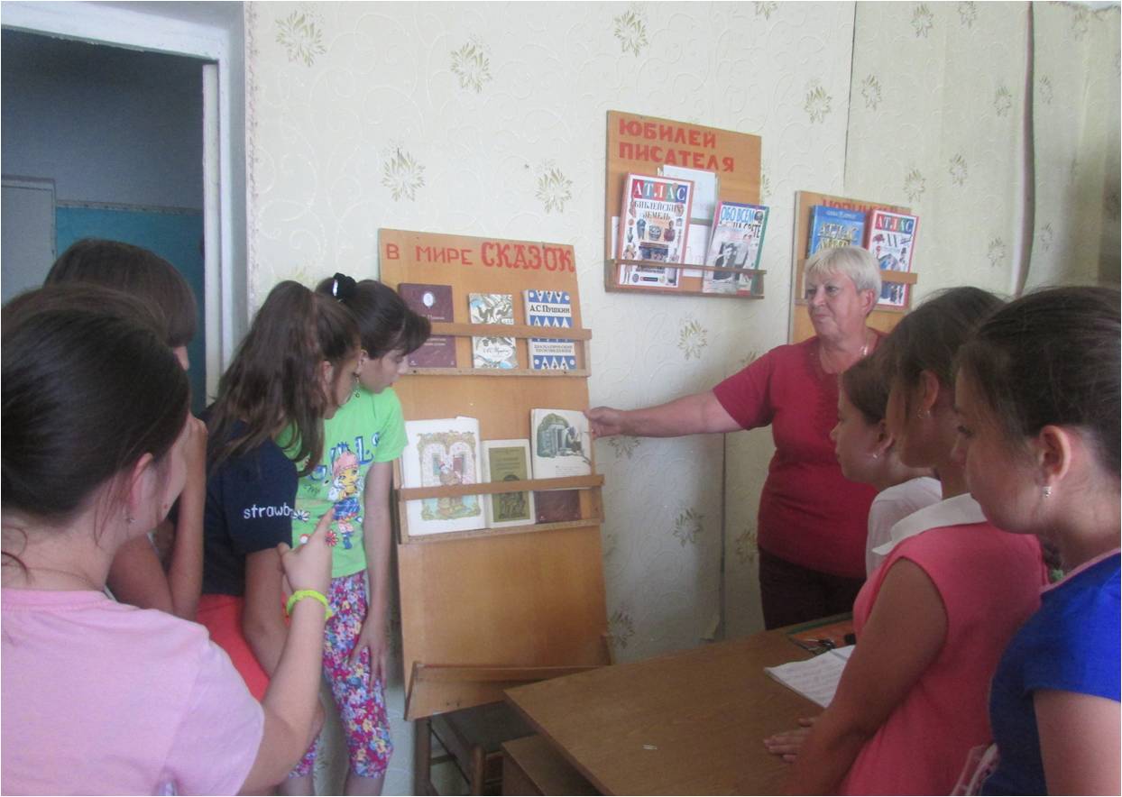 Библиотекарь ребятам рассказала о выдающемся писателе, они назвали произведения, которые они читали, ответили на вопр...