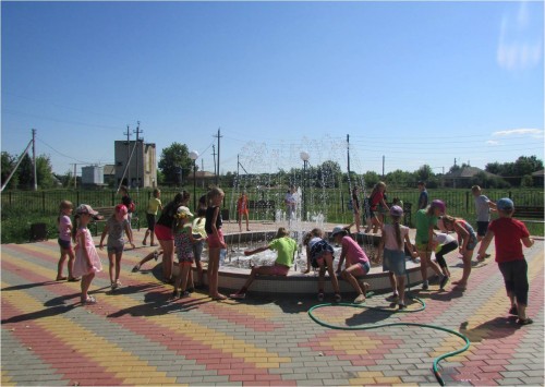 в летний жаркий денёк ребята с удовольствием отдохнули у фонтана